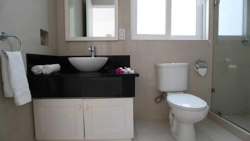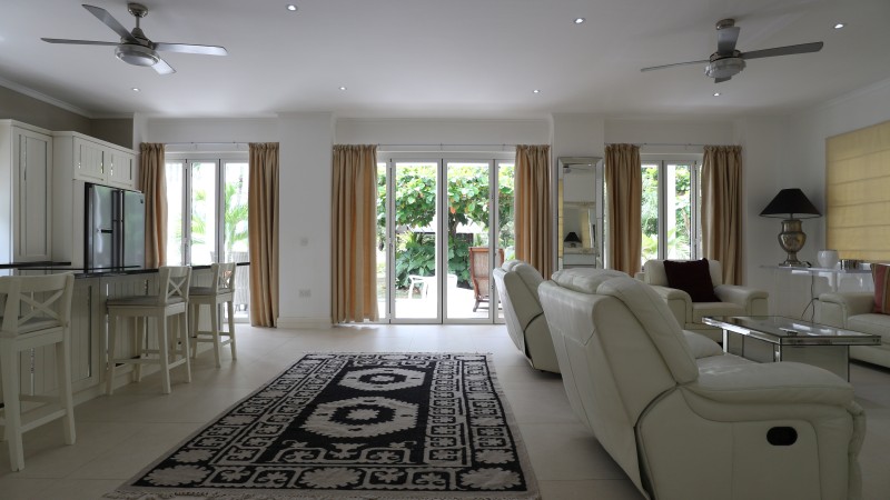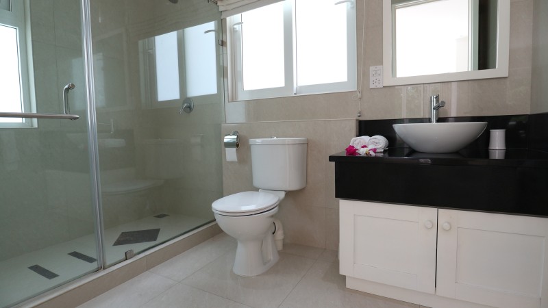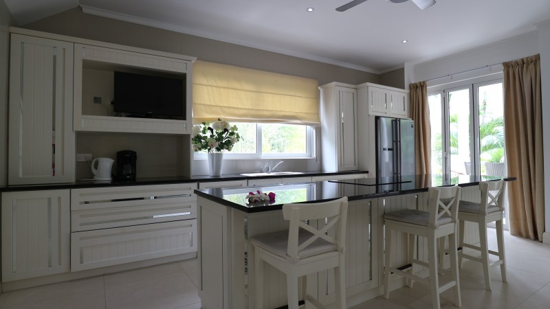 A stunning home away from home right on the beach! Everything you need for a relaxing luxury stay and more! Our three bedroom villas feature private plunge pools, sun decks and verandas for al fresco dining. The bi-folding glass doors bring the outside in, to a relaxing airy living room and fully equipped kitchen. Upstairs two king sized suites enjoy air-conditioning, large ensuite bathrooms and a shared balcony with fabulous views of the tropical gardens. The third bedroom features a smaller double bed, air-conditioning and a private balcony with views over the mist shrouded mountains. There is a third bathroom with shower downstairs. There is a direct access to the beach, just 1 minutes walk from your villa and you are on the white sand of Beau Vallon. Self catered. Free WIFI and free parking are included.