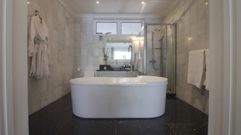 Our ocean view rooms are large and luxurious and offer stunning views straight over the Indian Ocean. The sumptuous rooms all have king size beds, seating and a desk. The marble ensuite bathrooms are equipped with showers and free standing bath tubs. Let the sound of the waves lull you to sleep at night, with bi-folding glass doors directly onto the shared terrace. Enjoy the fresh ocean breeze on your loungers on the terrace. A delicious homemade buffet breakfast is included in your stay.